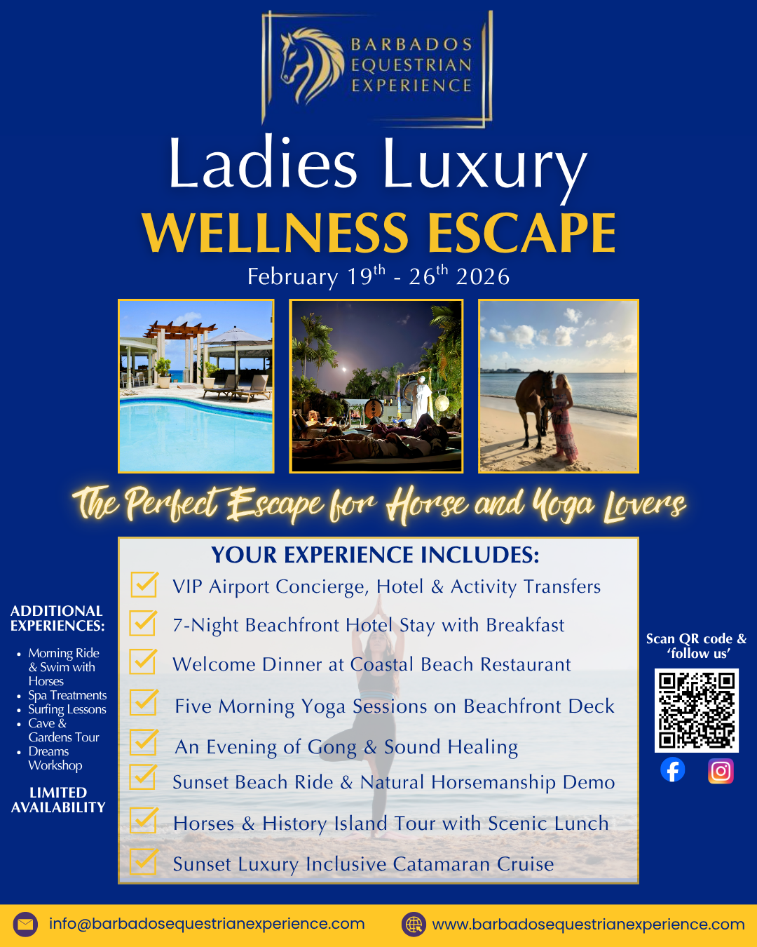 Limited to just 8 guests, this soulful escape blends daily equine experiences, gentle yoga, mindful movement and the natural beauty of Barbados into one unforgettable journey of reconnection and renewal.